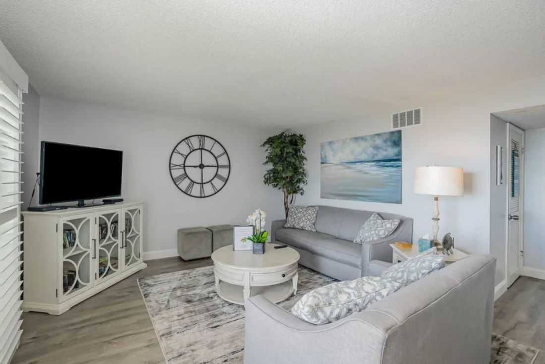 Welcome to our cozy retreat in Cocoa Beach. Just steps from the soft sands and rolling waves, this tastefully furnished space offers comfort and convenience. Enjoy breathtaking ocean views from the private balcony, savor the fully equipped kitchen, and unwind in the cozy living room after a day of exploration or relax by the pool. With nearby attractions like Kennedy Space Center and Cocoa Beach Pier and beaches at your doorstep with restaurants and shopping-This is your ideal coastal retreat.
